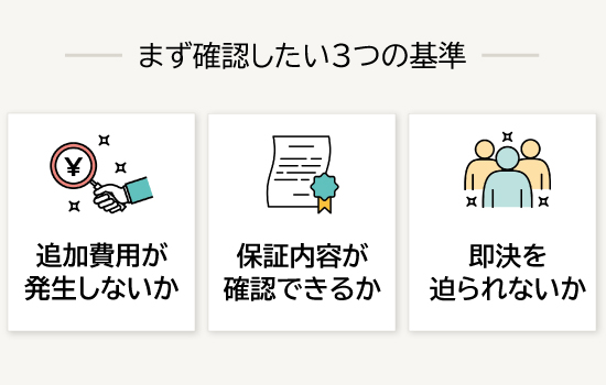 追加費用や保証の有無・営業姿勢など、自分で判断基準を確認したい。